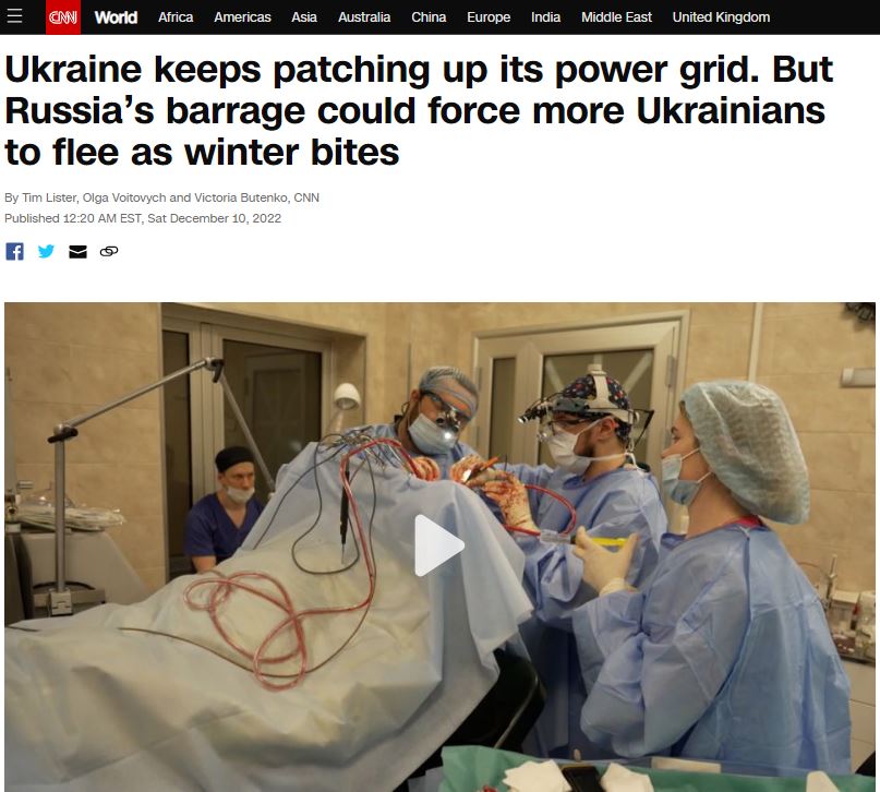 Цитируя украинского вице-премьера, CNN отмечает, что, по заявлению "Укрэнерго", все тепловые и гидроэлектростанции частично повреждены и что оккупированная Запорожская АЭС не подает электроэнергию в сеть.