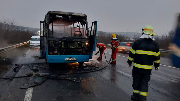 "Утром 12 декабря на автодороге Киев-Чоп возле с. Н. Солотвино Ужгородского района, во время движения загорелся рейсовый автобус марки I-VAN. К счастью, никто из людей не пострадал", - сообщает ГСЧС.