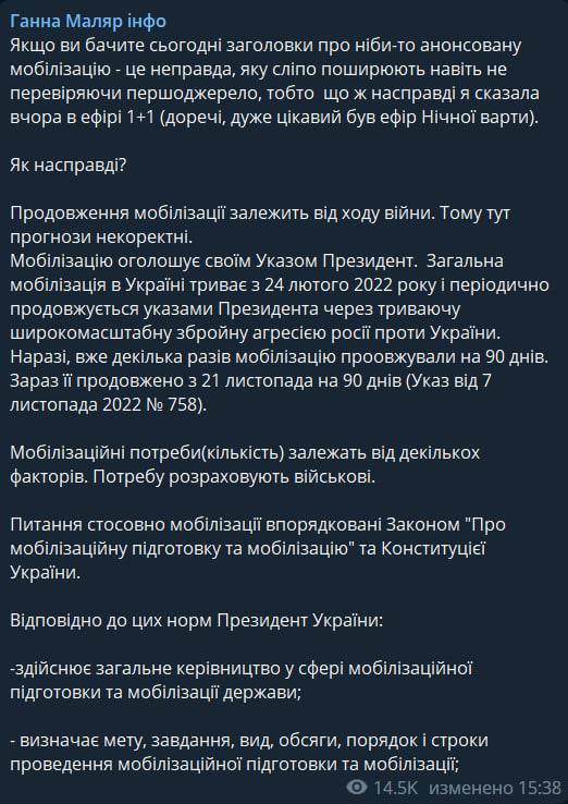 13.10 В Украине возможна новая волна мобилизации, заявила замминистра обороны Анна Маляр.