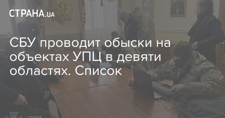 СБУ 14 декабря проводит обыски на объектах УПЦ в девяти областях. В частности, "контрразведывательные мероприятия" проводят в соборах, церквях и монастырях в Закарпатской, Черновицкой, Ровенской, Волынской, Николаевской, Сумской, Львовской, Житомирской и Херсонской областях.