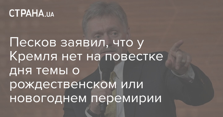 Пресс-секретарь президента РФ Дмитрий Песков заявил, что у Кремля нет на повестке дня темы рождественского или новогоднего перемирия. Он сказал, что таких предложений ни от кого Москве не поступало.