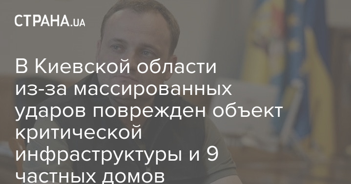 В результате массированной атаки по Украине в Киевской области поврежден объект критической инфраструктуры и 9 частных домов в разных районах области.