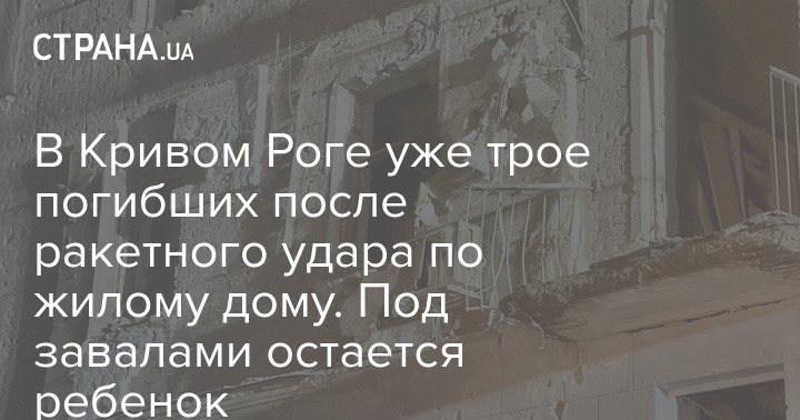В Кривом Роге уже трое погибших после ракетного удара по жилому дому: 64-летняя женщина и супруги. Под обломками дома остается маленький сын погибшей семейной пары.