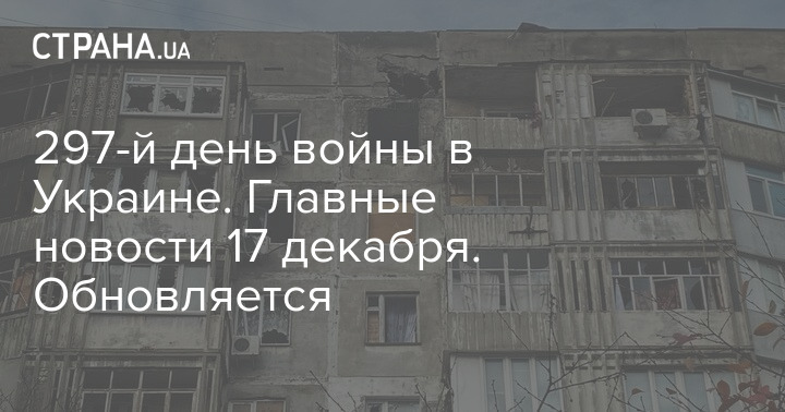В субботу, 17 декабря, в Украине идет уже 297-й день войны с РФ.