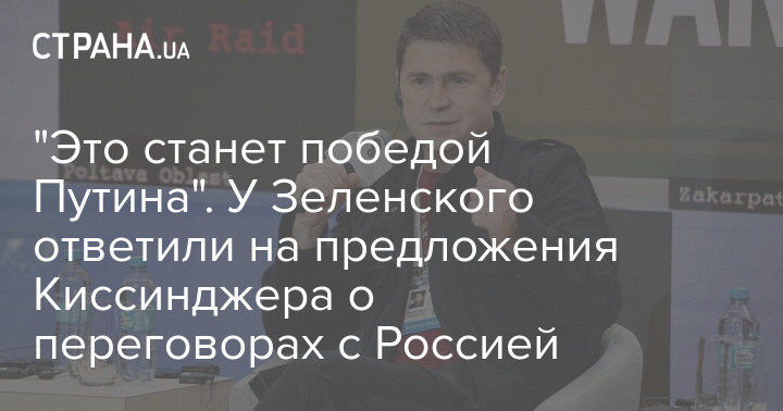 "Рецепт, к которому призывает экс-госсекретарь, но боится произнести вслух, прост: умиротворить агрессора путем принесения в жертву части территории Украины с получением гарантий о ненападении на другие государства Восточной Европы", - заявил Подоляк. Он считает, что "это станет победой Путина".
