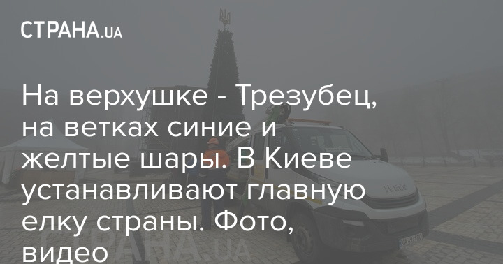 На верхушке - Трезубец, на ветках синие и желтые шары. В Киеве устанавливают главную елку страны. Фото, видео
