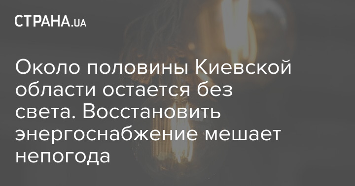Около половины Киевской области остается без света. Восстановить энергоснабжение мешает непогода