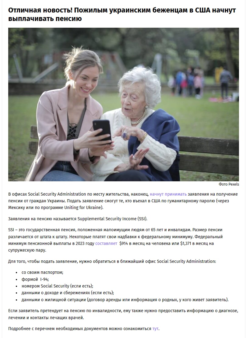 08:59 Украинским пенсионерам, которые въехали в США после 24 февраля 2022 года, начнут платить государственную пенсию Supplemental Security Income (SSI).