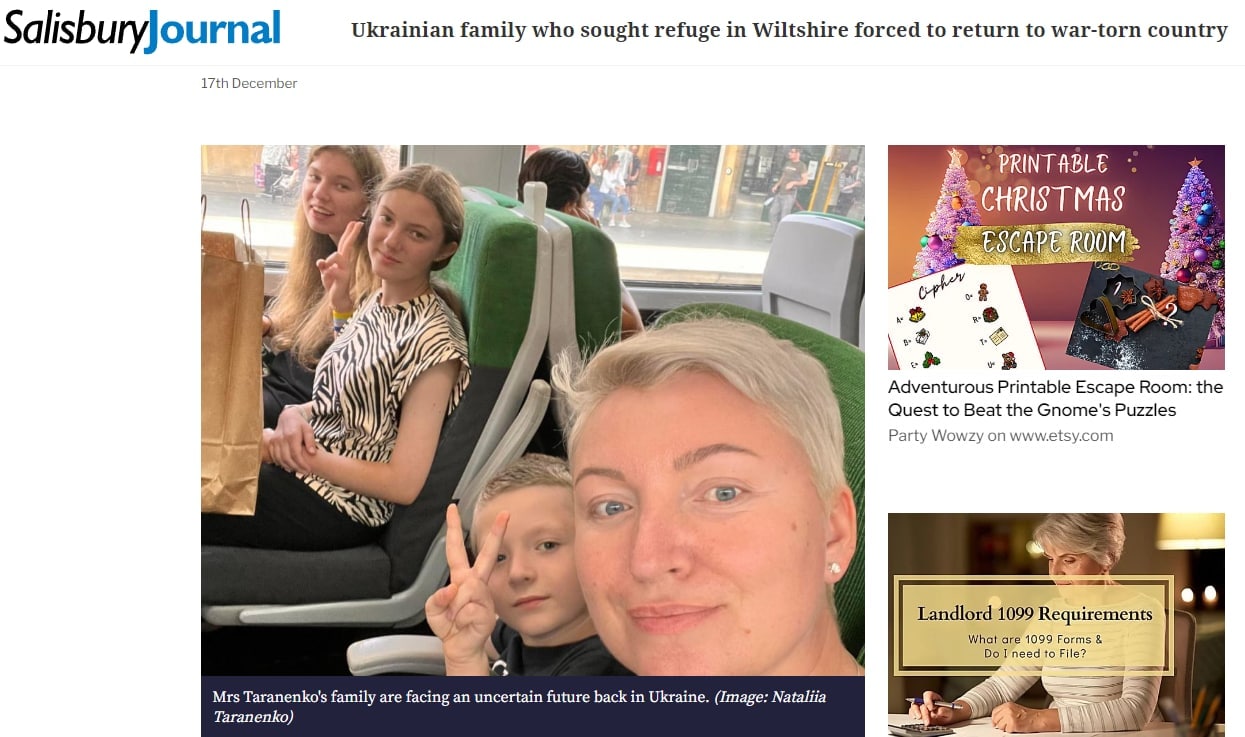10:30 Украинка Наталья Тараненко, которая привезла своих троих детей в Великобританию полгода назад, вынуждена вернуться на родину, в пригород Киева, не сумев найти достойное британское жилье, пишет Asalisbury Journal.