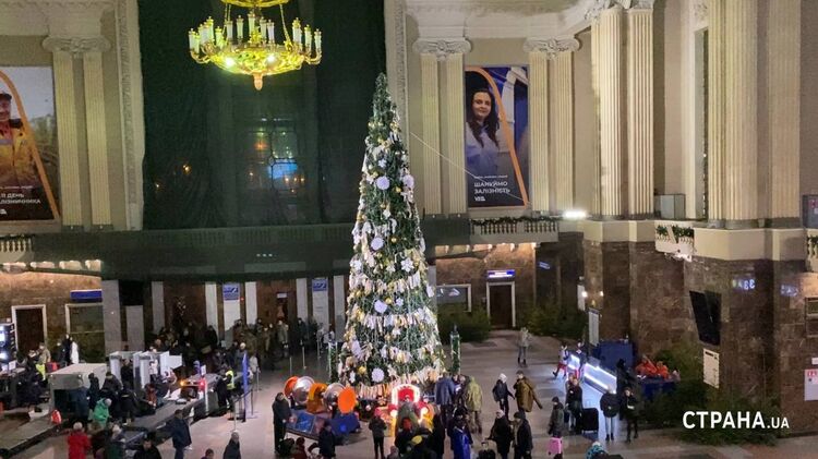На Центральном железнодорожном вокзале Киева установили новогоднюю елку.