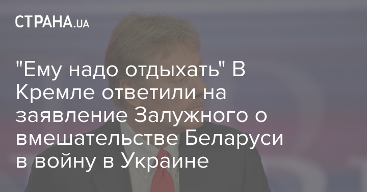 Пресс-секретарь президента России Дмитрий Песков, комментируя слова главнокомандующего Вооруженными силами Украины генерала Валерия Залужного о подготовке совместной операции Москвы и Минска, посоветовал ему отдыхать.