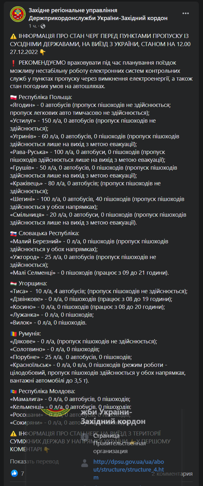 Ситуация в пунктах пропуска. Фото: dpsu.gov.ua