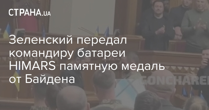 Президент Украины Владимир Зеленский во время сегодняшнего обращения к депутатам Верховной Рады вручил командиру батареи HIMARS, капитану Павлу Чернявскому памятный знак, который попросил передать ему президент США Джо Байден.