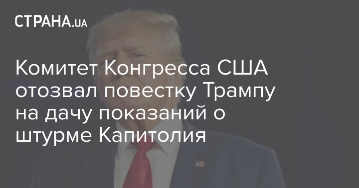 Специальный комитет Палаты представителей Конгресса США, расследовавший ситуацию вокруг штурма Капитолия 6 января 2021 года, отозвал повестку о явке для дачи показаний бывшему американскому президенту Дональду Трампу. Это произошло в связи с завершением работы комитета.