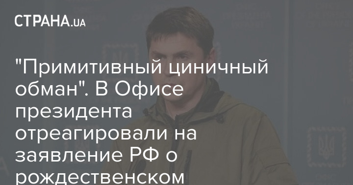 Советник главы Офиса президента Украины Михаил Подоляк отреагировал на заявление РФ о рождественском перемирии, назвав слова России "примитивным циничным обманом".