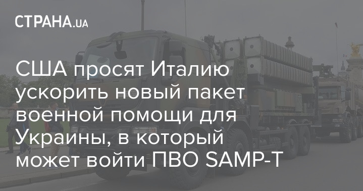 США просят Италию ускорить новый пакет военной помощи для Украины, в который может войти ПВО SAMP-T