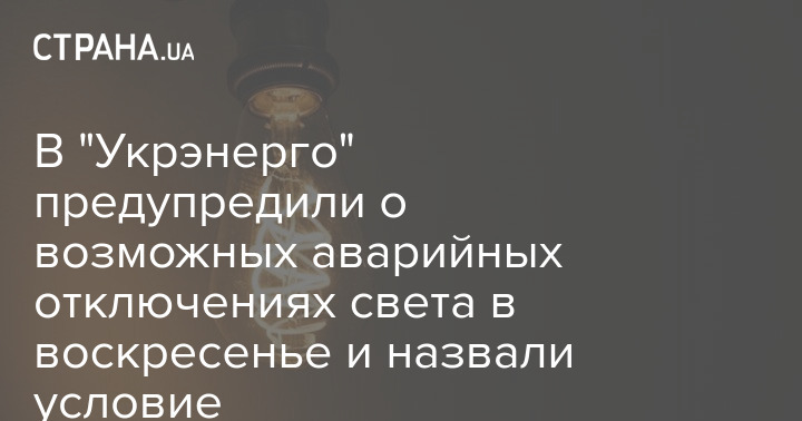 В воскресенье, 8 января, в Украине возможны аварийные отключения электроэнергии.