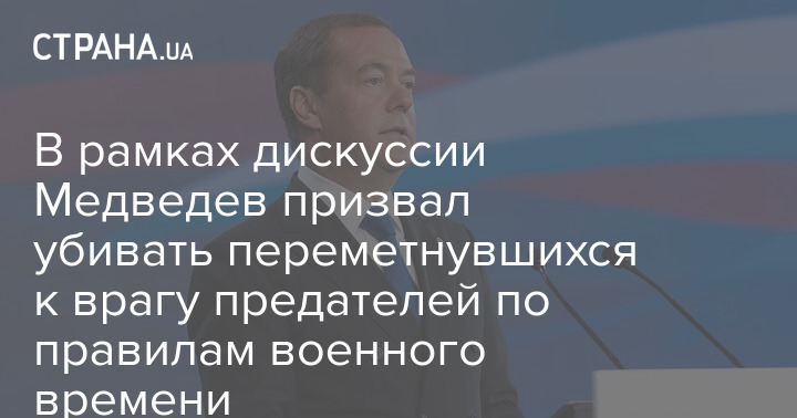 Замглавы Совбеза РФ Дмитрий Медведев призвал убивать "предателей, переметнувшихся к врагу и желающих гибели своему Отечеству".