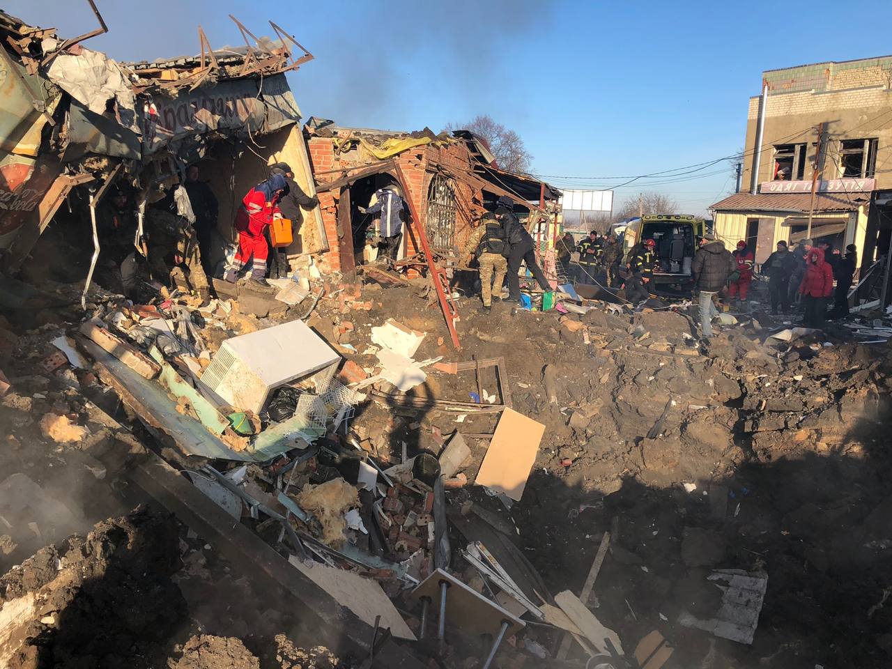 10.45 В результате удара по рынку в Шевченково погибла 60-летняя женщина, сообщают в Харьковской ОГА. Другие пострадавшие - госпитализированы. Спасатели продолжают разбирать завалы.