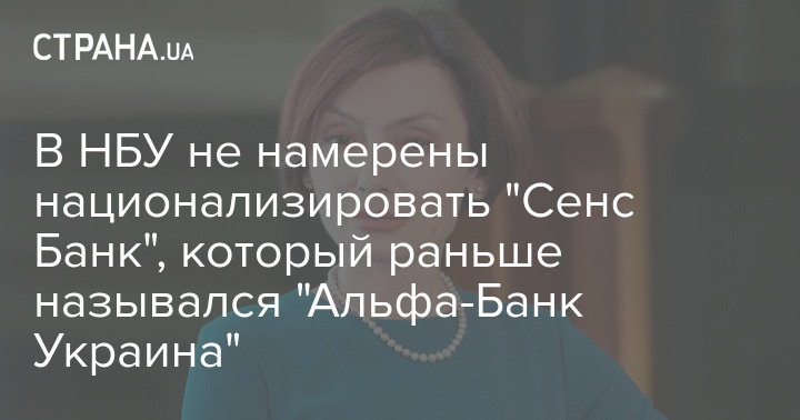 Первый заместитель председателя НБУ Екатерина Рожкова заявила, что сейчас Нацбанк не видит признаков неплатежеспособности "Сенс Банка" (новое название "Альфа-Банк Украина") для его национализации.