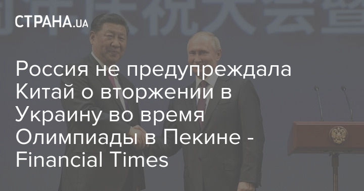 Россия не предупреждала Китай о вторжении в Украину во время Олимпиады в Пекине - Financial Times
