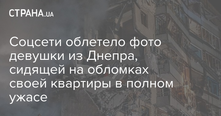 Соцсети облетело фото девушки из разрушенного дома в Днепре, сидящей на обломках своей квартиры с эмоцией застывшего ужаса на лице.