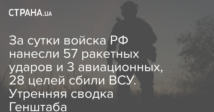 За сутки войска РФ нанесли 57 ракетных ударов и 3 авиационных, 28 целей сбили ВСУ. Утренняя сводка Генштаба