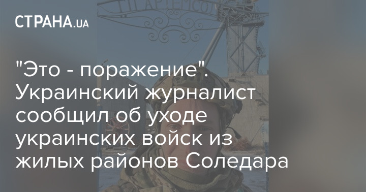 "Это - поражение". Украинский журналист сообщил об уходе украинских войск из жилых районов Соледара