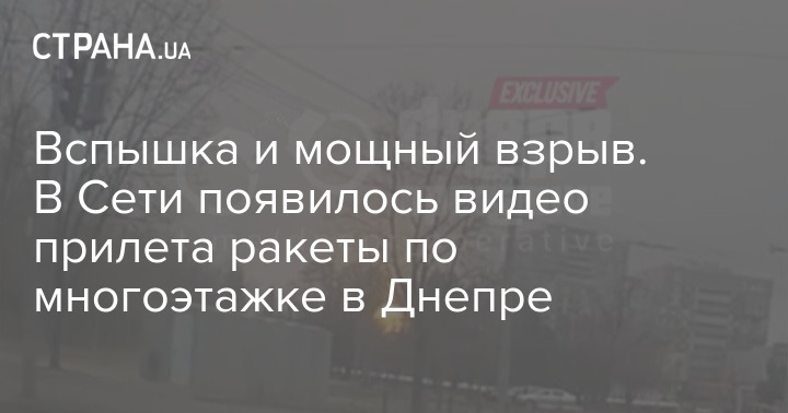 В Сети появилось видео, как утверждается, прилета ракеты по дому в Днепре в субботу, 14 января, в котором погибло 40 человек.