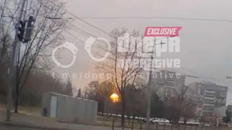 На видео можно заметить вспышку и мощный взрыв в жилых кварталах города.