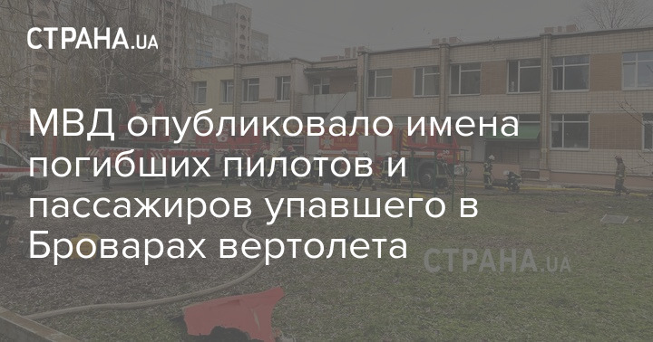 Стали известны имена погибших пилотов и пассажиров вертолета, упавшего в Броварах Киевской области.