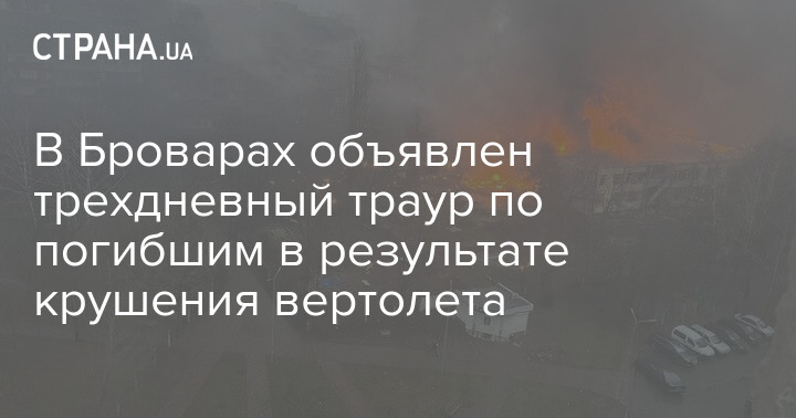 В Броварах в связи с сегодняшней катастрофой вертолёта объявлен трехдневный траур.
