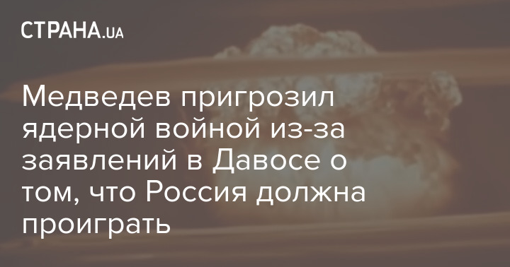 Зампред совбеза РФ Дмитрий Медведев пригрозил ядерной войной "недоразвитым политическим тусовщикам" из-за высказываний на форуме в Давосе о том, что Россия должна проиграть в войне против Украины.
