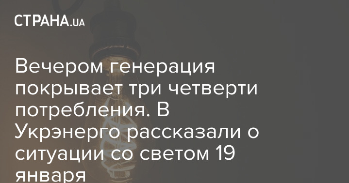 Вечером генерация покрывает три четверти потребления. В Укрэнерго рассказали о ситуации со светом 19 января