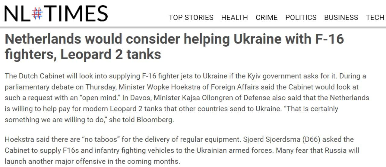 20:26 Нидерланды поставят ВСУ две пусковые установки ЗРК Patriot и ракеты к ней.