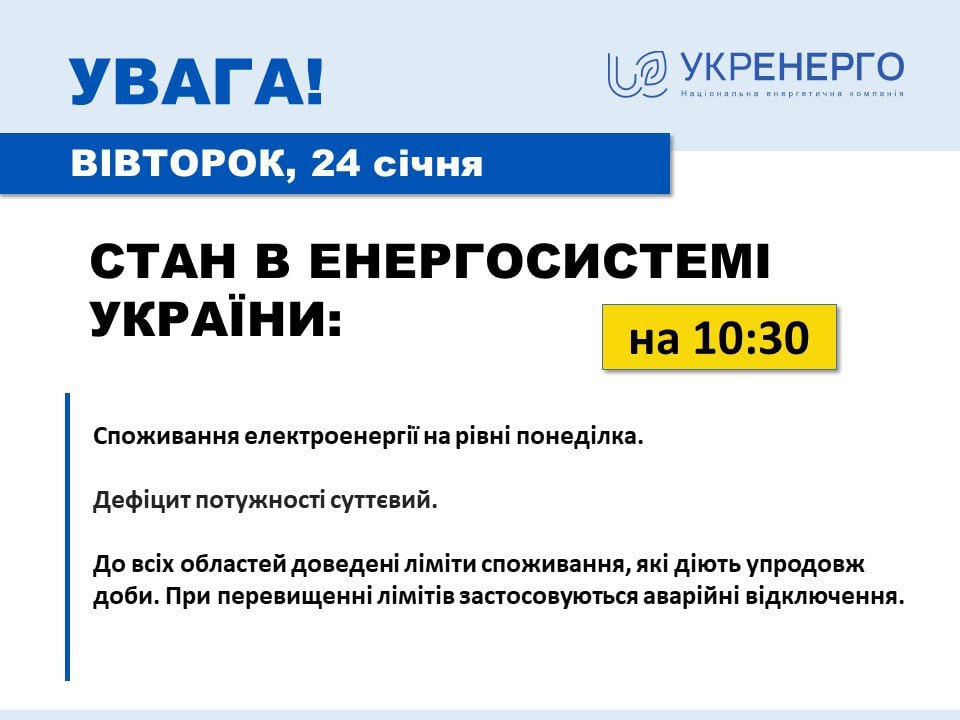 10:58 В Украине незначительно выросло производство электроэнергии, но дефицит ещё остаётся существенным. Поэтому лимиты по областям не увеличены, сообщает Укрэнерго.