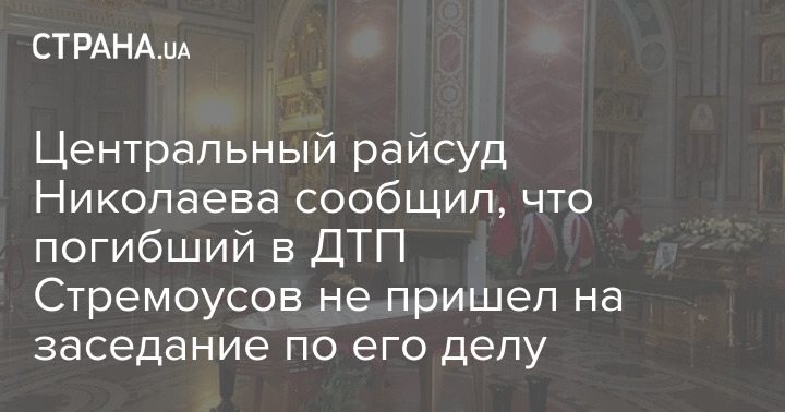 Центральный райсуд Николаева заявил, что погибший в ДТП "замглавы Херсонской ВГА" Кирилл Стремоусов, который обвиняется в государственной измене, не явился на заседание.