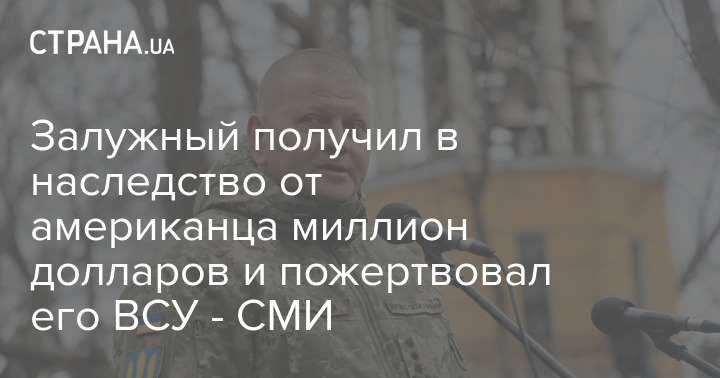 Главнокомандующий Вооруженными силами Украины генерал Валерий Залужный получил по наследству из США один миллион долларов. После этого он передал все полученные деньги на нужды украинской армии.