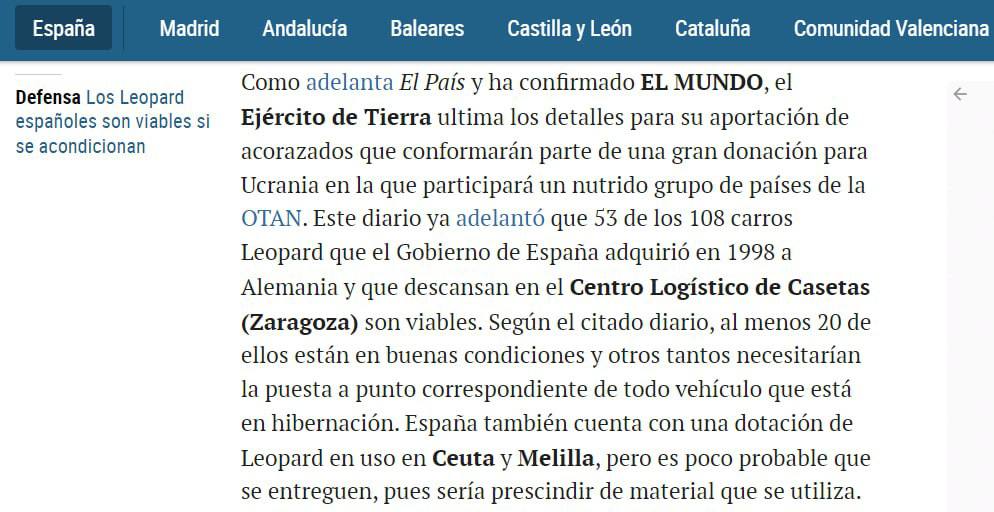 11.40 Испания может передать Украине 53 немецких танка Leopard, сообщает газета El Mundo.