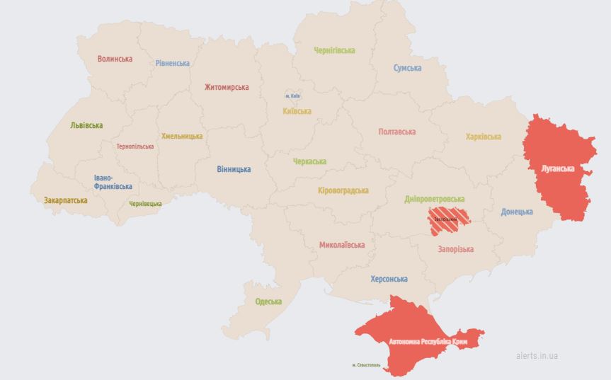 21:38 Воздушная тревога в Днепропетровской и Запорожской областях.