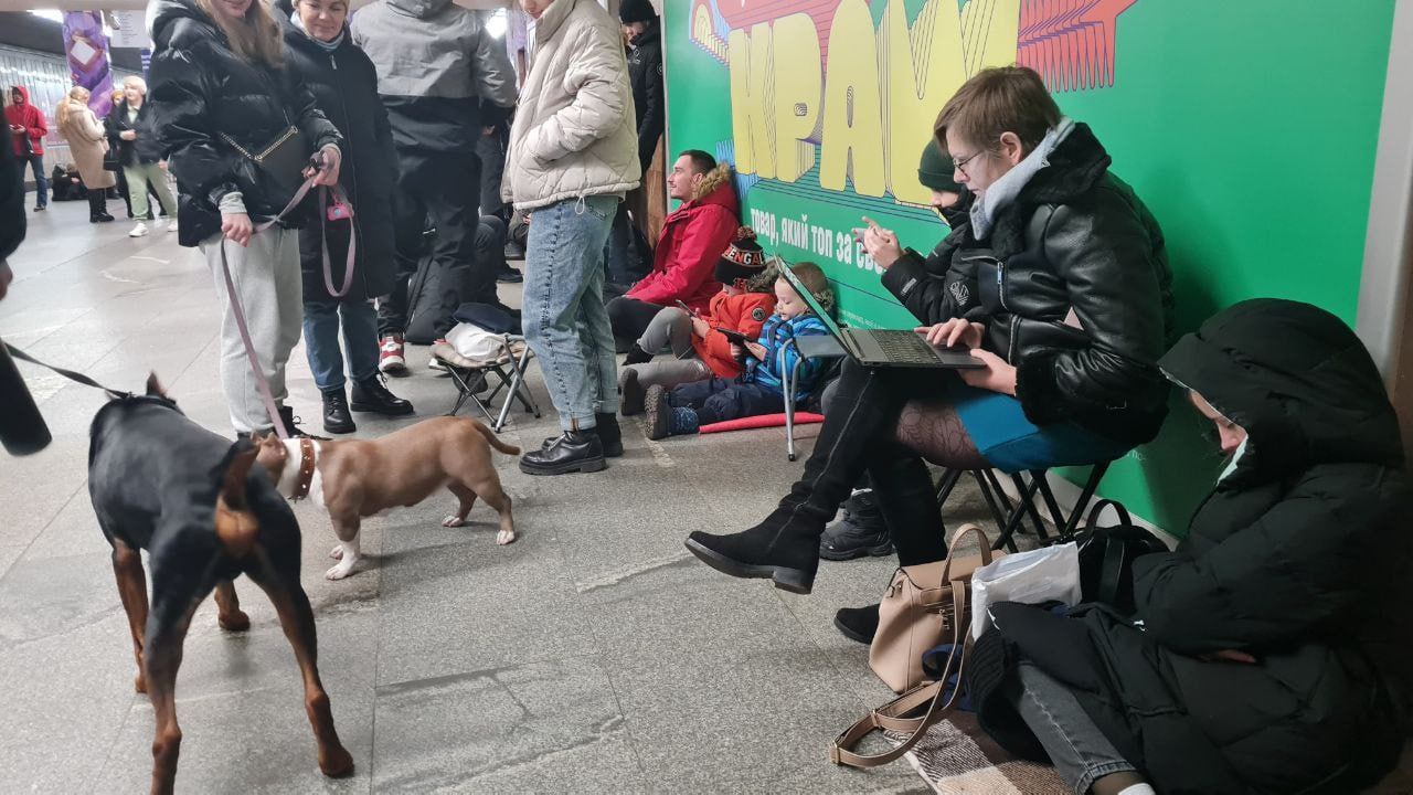 09:46 Много народа укрывается от обстрела в столичной подземке.