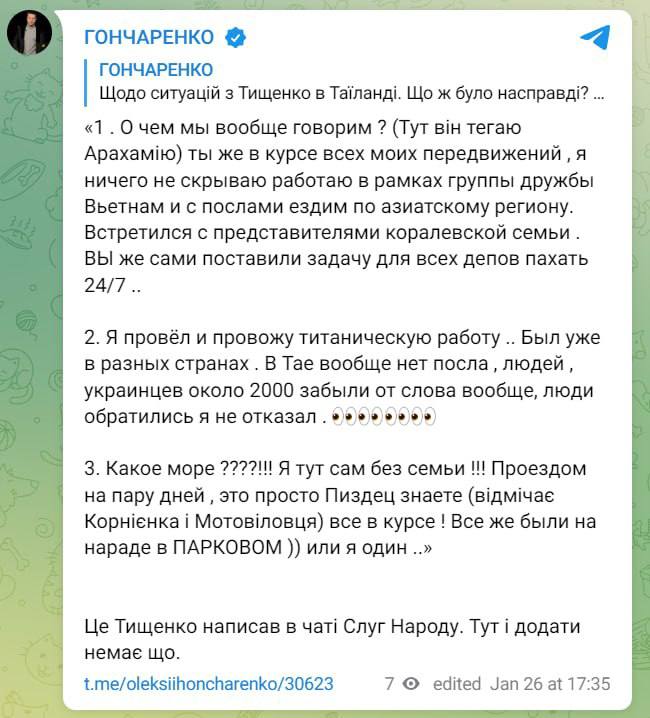 23.06 Николай Тищенко, которого исключили из партии «Слуга народа» за поездку в Таиланд (и теперь хотят исключить из фракции), впервые прокомментировал публично скандал.