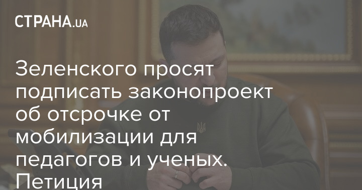 На сайте президента появилась петиция с требованием к Зеленскому подписать законопроект об отсрочке от мобилизации для научных, научно-педагогических и педагогических работникам.