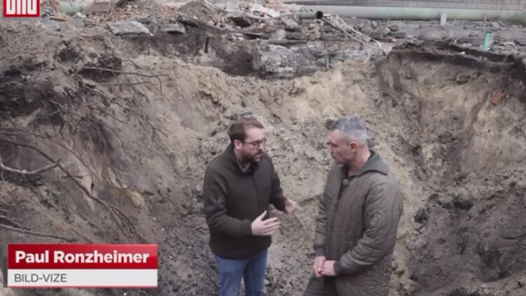 Немецкий Bild записал интервью с мэром Киева Кличко из воронки от ракеты "Кинжал". Материал озаглавили - "Кличко показывает мегакратер из Киева".