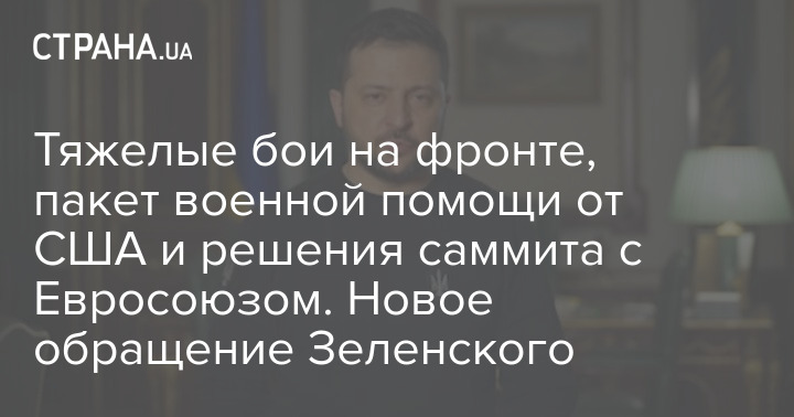 Тяжелые бои на фронте, пакет военной помощи от США и решения саммита с Евросоюзом. Новое обращение Зеленского