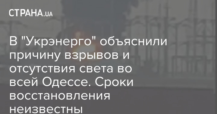 В "Укрэнерго" объяснили причину взрывов и отсутствия света во всей Одессе. Сроки восстановления неизвестны