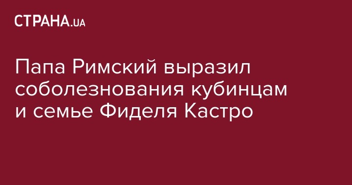 Папа Римский Франциск выразил соболезнования в связи со смертью лидера кубинской революции Фиделя Кастро. Об этом сообщает Radio Vaticana.
