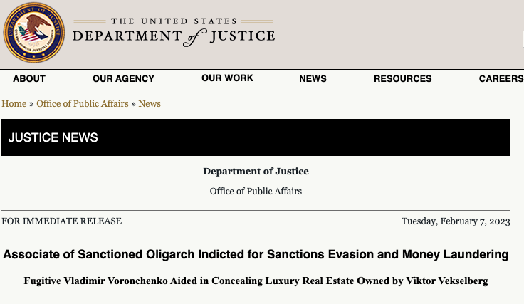 США предъявили обвинения россиянину Владимиру Воронченко за помощь в обходе санкций российскому олигарху Виктору Вексельбергу. Обвинительное заключение обнародовал федеральный суд Нью-Йорка.