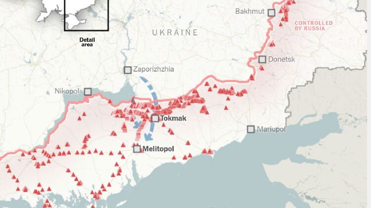 "Но двигаться вперед будет непросто. Россия выстроила оборону по всей линии фронта, а самая густая сеть траншей и противотанковых ловушек находится вокруг Мелитополя", - пишет издание.