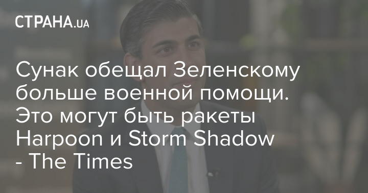 Премьер-министр Великобритании Риши Сунак пообещал президенту Украины Владимиру Зеленскому предоставить больше военной помощи. Конкретики пока не было, но издание The Times предполагает, что это могут быть противокорабельные ракеты Harpoon и ракеты класса "воздух - земля" Storm Shadow.
